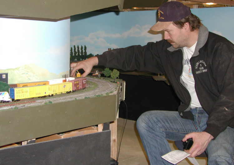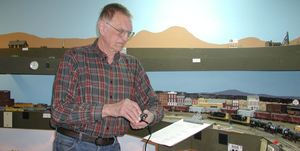 With switch list and throttle in hand, Jeff DeBrock is working the First May Turn.