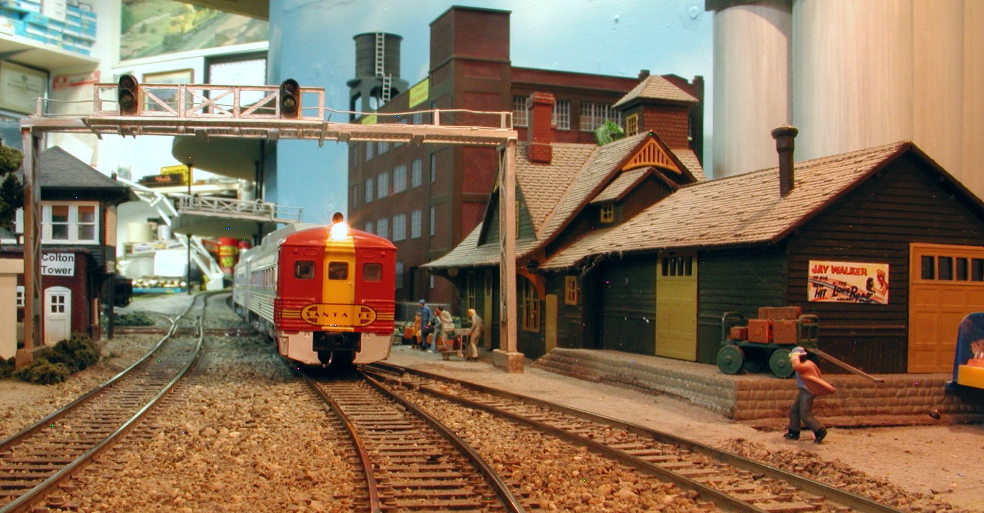 The CSWRR provides a round trip Commuter Service from San Bernardino to Barstow and San Bernardino to Los Angeles. Here we see the RDC 191W pulling into Colton to pick-up passengers. The Railroad operates the two RDC’s 191/192 and F7A 315 and two passenger cars operated as Push-Pull on alternate sessions.