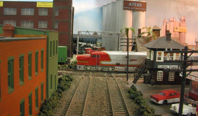 At Colton Tower, the CSWRR crosses the Southern Pacific Main at grade.