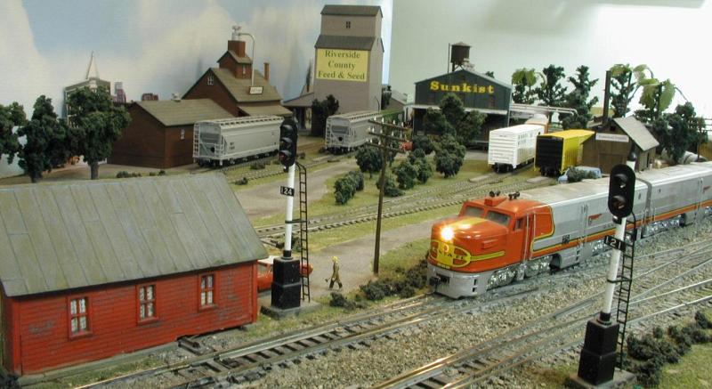 After a short delay, our Special re-enters the main at Casa Blanca to continue east. In the background behind the Casa Blanca depot, we see the Topham & Son Citrus Packing House.